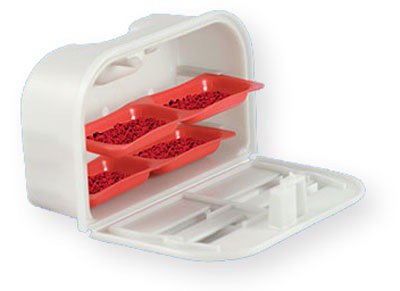 Контейнер предназначен для раскладки инсектицидных средств для уничтожения мух. Контейнер состоит из корпуса, который представляет собой лоток с входными отверстиями с лицевой стороны и закрывающейся крышкой на ключ. Внутри корпус разделен на лоточки для размещения инсектицидных средств в виде гранулированной приманки. Изготовлен из высококачественного полипропилена для многократного использования. Может быть использован как в помещении, так и снаружи. Предотвращает доступ к ядам как детей, так и нецелевых видов животных, защищает приманку от дождя, ветра.